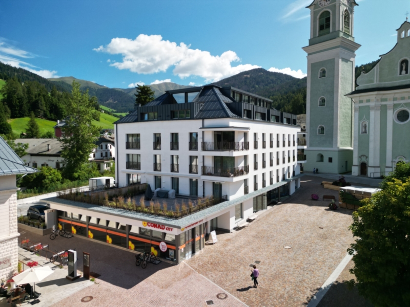 Il complesso residenziale si trova nel centro di Dobbiaco ed è circondato da tutte le infrastrutture necessarie per la vita quotidiana. Caffè, ristoranti, negozi e un'accogliente piazza del paese per rilassarsi sono a portata di mano.