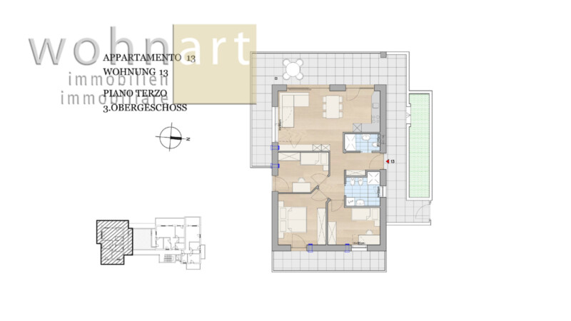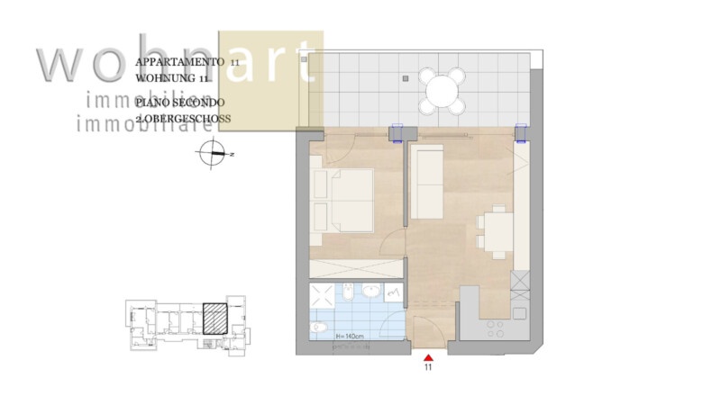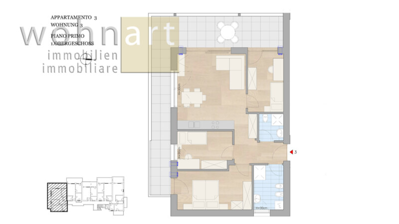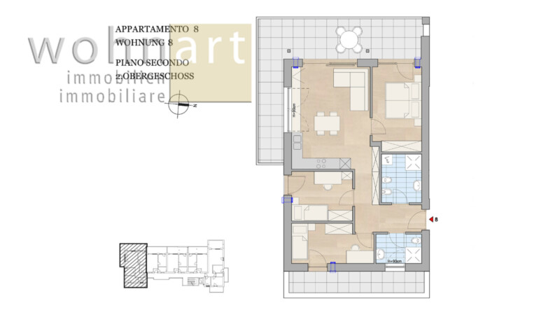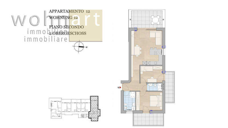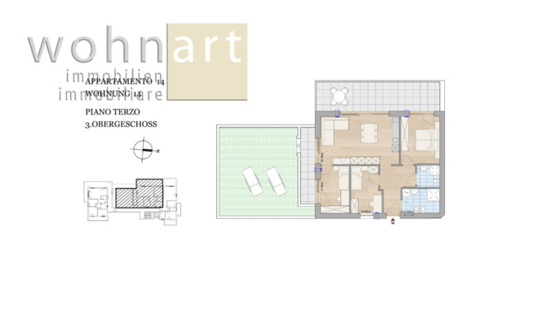 Il complesso residenziale „Residence Emma“ a Laghetti, una frazione di Egna, comprende in totale 15 unità abitative con bi-, tri- e quadrilocali. Tutti gli appartamenti si distinguono per il massimo comfort e una funzionalità ben studiata. Materiali di alta qualità e finiture moderne creano un ambiente elegante, tra cui pavimenti in legno pregiato e riscaldamento a pavimento. Ogni unità dispone di ampi terrazzi o di un giardino privato.