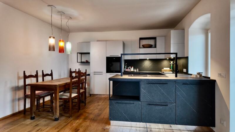 Questo appartamento trilocale ristrutturato di alta qualità coniuga il fascino storico con il comfort abitativo moderno e si trova in una posizione tranquilla e centrale a Neumarkt.