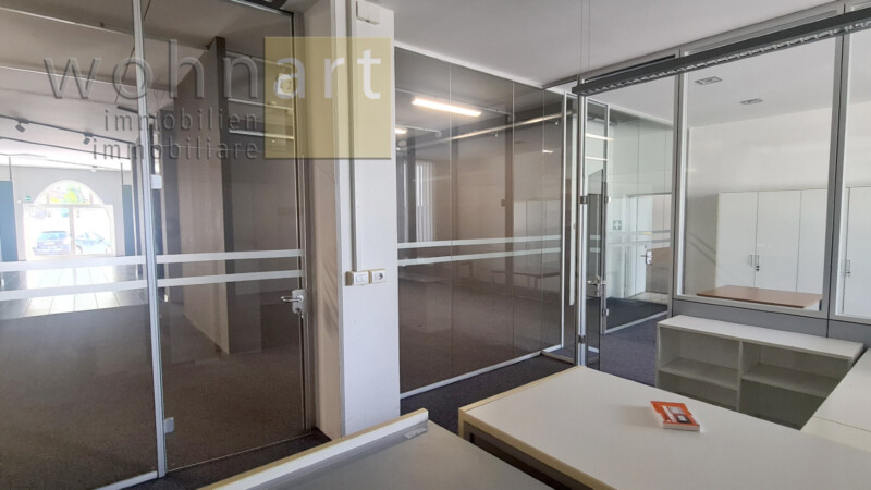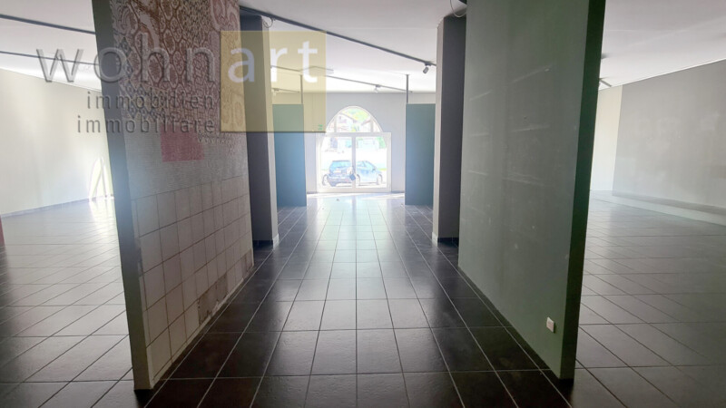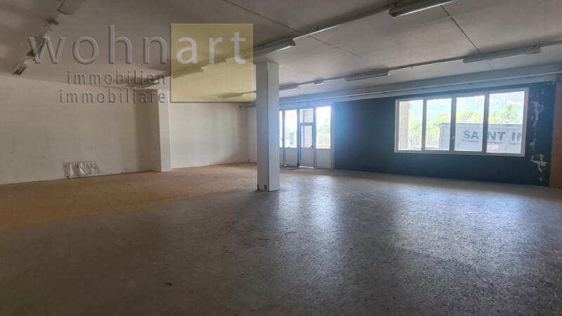 Locale commerciale spazioso in eccellente posizione commerciale a Laghetti di Egna, in affitto. Il locale gode di ottima visibilità dalla trafficata strada nazionale e dispone di parcheggio direttamente davanti. È inoltre possibile suddividere il locale in due unità separate.