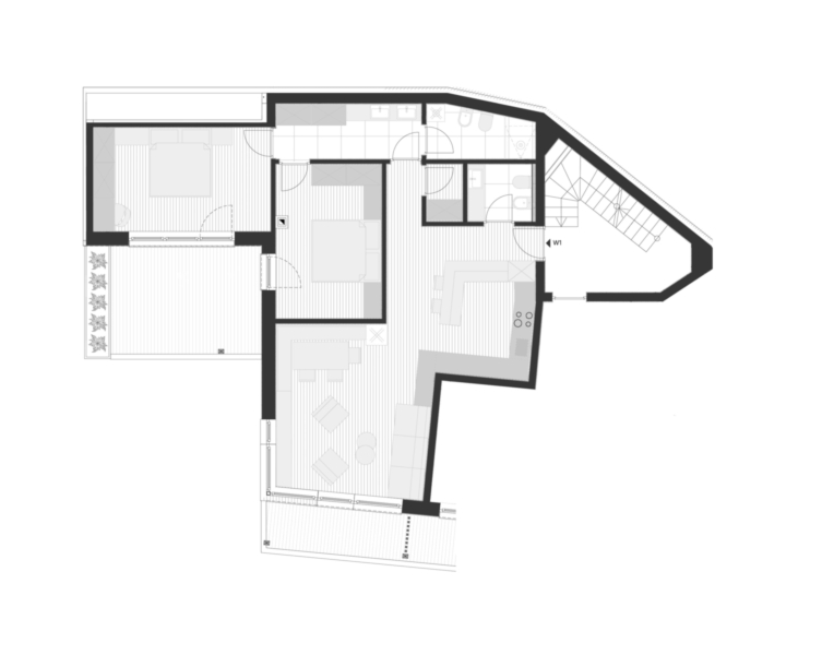 Questo nuovo trilocale al primo piano è composto da un'ampia cucina abitabile, due spaziose camere da letto, un bagno, un WC di servizio e un ripostiglio. Dal soggiorno e dalle camere da letto si accede al balcone e alla terrazza, da cui si gode una splendida vista sulle Dolomiti. Al piano terra l'unità dispone di due posti auto in garage con una propria area dedicata alle biciclette.