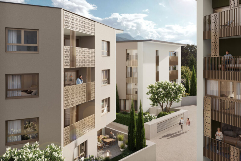 Con il Quartier am Mühlrain, a Laces, sta nascendo una nuova casa. Con attenzione e pianificazione accurata, stiamo realizzando 5 edifici residenziali alla periferia occidentale di Laces. Con il Quartiere al Mühlrain, stiamo creando una vera e propria comunità residenziale, in cui ogni esigenza e stile di vita trova il proprio spazio! Con una varietà di appartamenti e spazio sufficiente per vivere la vicinanza di quartiere o godere della propria tranquillità. Gli appartamenti con 1 camera da letto, 2 o più camere da letto dispongono di spazi giardino, balcone o terrazze.