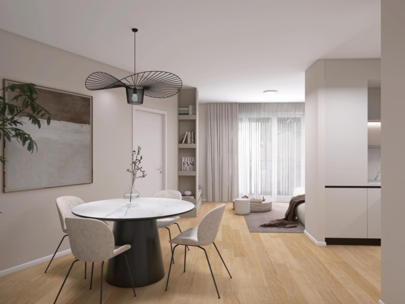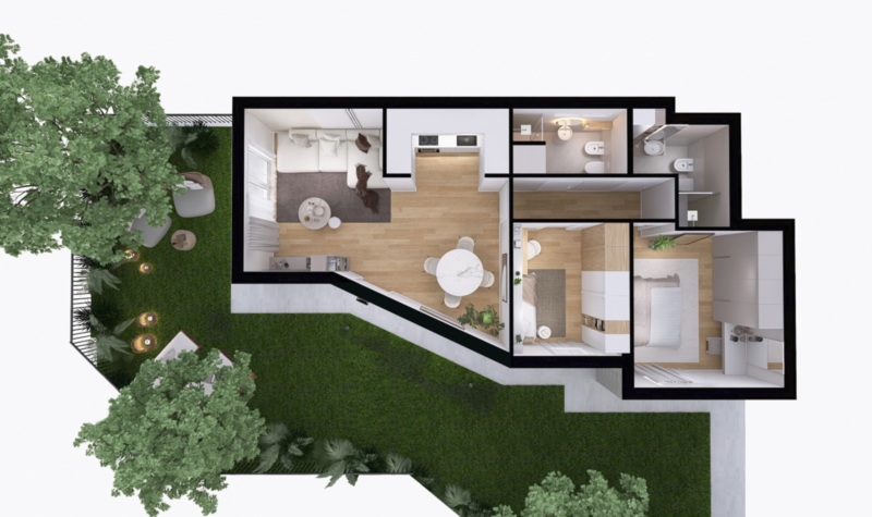 Anche l'appartamento di 3 locali rappresenta un'aggiunta interessante, sia per uso proprio, come dependance per gli ospiti o come investimento. Si distingue per la sua moderna disposizione degli spazi, la grande luminosità e un'accogliente area esterna, ideale per coppie o piccole famiglie.