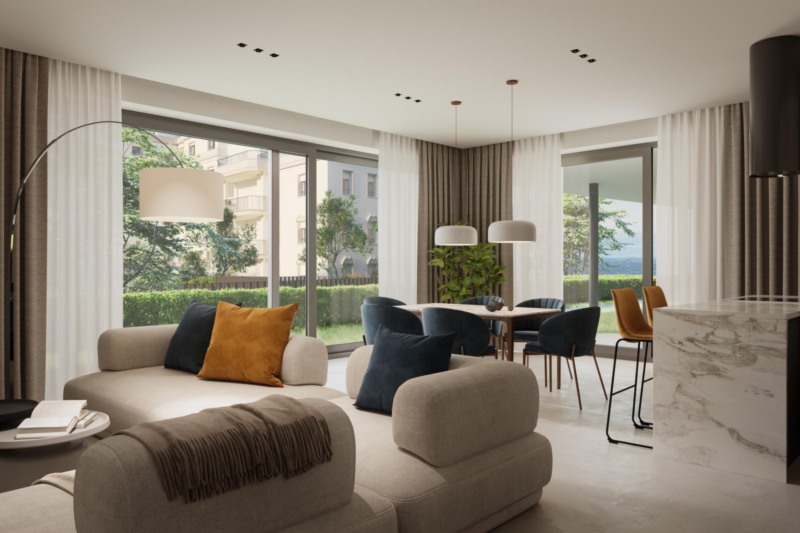 I futuri appartamenti convincono per le loro generose metrature, i materiali di alta qualità e un design che valorizza al meglio la luce e lo spazio. Ampie terrazze e balconi offrono ulteriore spazio abitativo all'aperto e una vista meravigliosa. Un giardino comune accuratamente progettato crea un'oasi verde, ideale per rilassarsi.