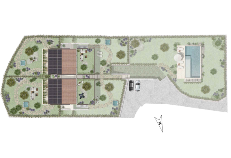 Un’elegante area comune con piscina a sfioro, solarium e ampio giardino paesaggistico offre un’oasi di relax in un’atmosfera che coniuga perfettamente esclusività e contatto con la natura.