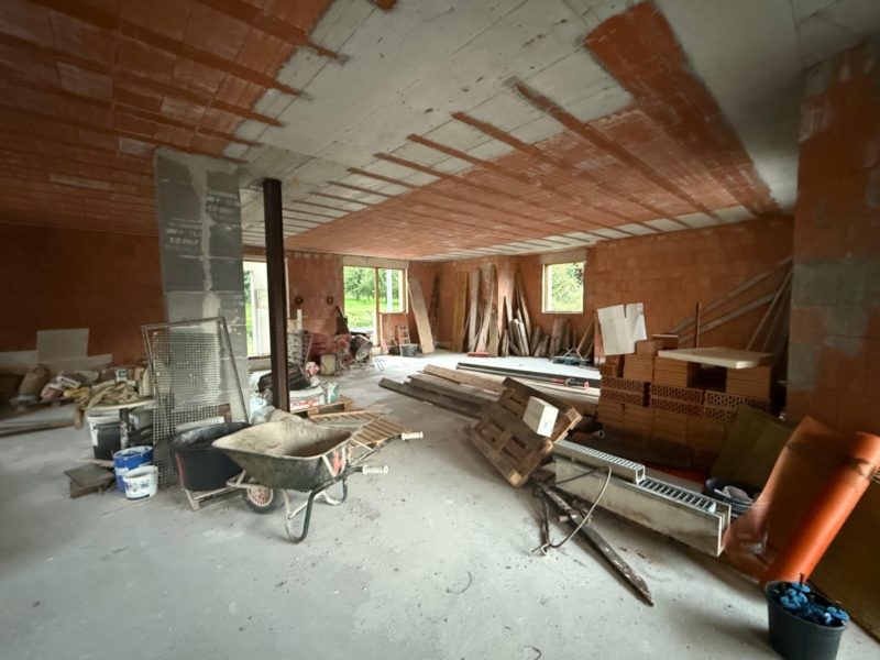 I lavori strutturali, compresa l'intonacatura esterna, sono stati completati. Il tetto è isolato.