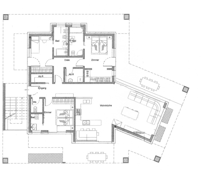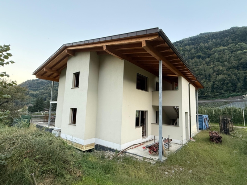 La casa si trova nel comune di Lagundo, nel distretto di Forst, circondata da terreni agricoli verdi. La superficie totale è di 957 m², per cui è possibile creare un ampio parco intorno alla casa.