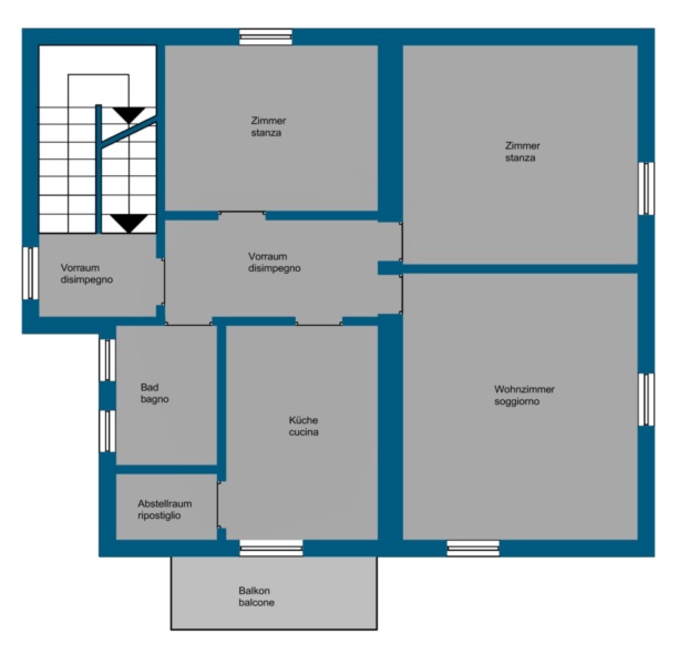 Il primo piano costituisce la zona giorno centrale e comprende un ampio trilocale che, grazie alla sua disposizione ben studiata e alla sua luminosità, trasmette una piacevole sensazione di comfort. La mansarda completa lo spazio disponibile e può essere utilizzata come soffitta o come riserva di ampliamento, perfetta per una camera degli ospiti, un ufficio o uno studio con vista sul verde.