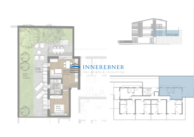 L’unità comprende una camera da letto confortevole, un’ampia zona giorno con cucina a vista, un elegante bagno e una terrazza con giardino privato, ideale per rilassarsi all’aria aperta.