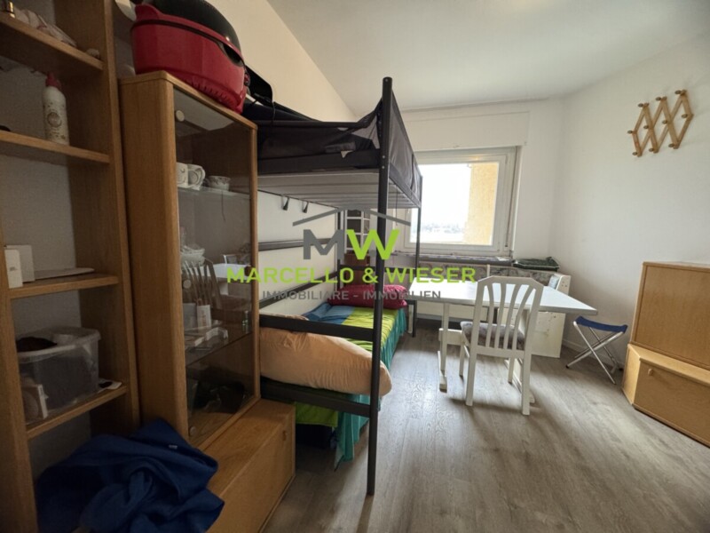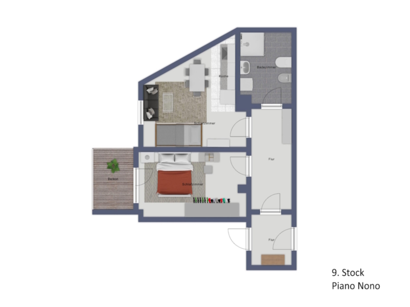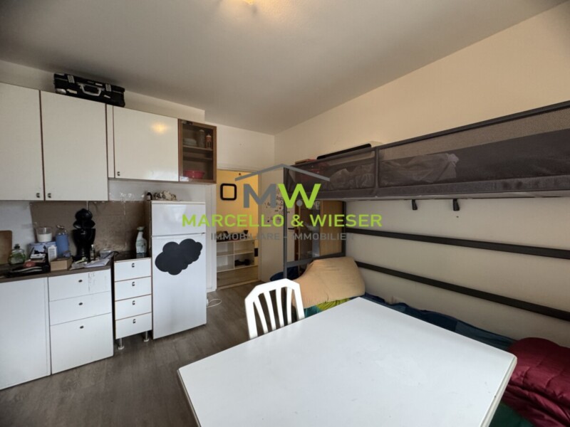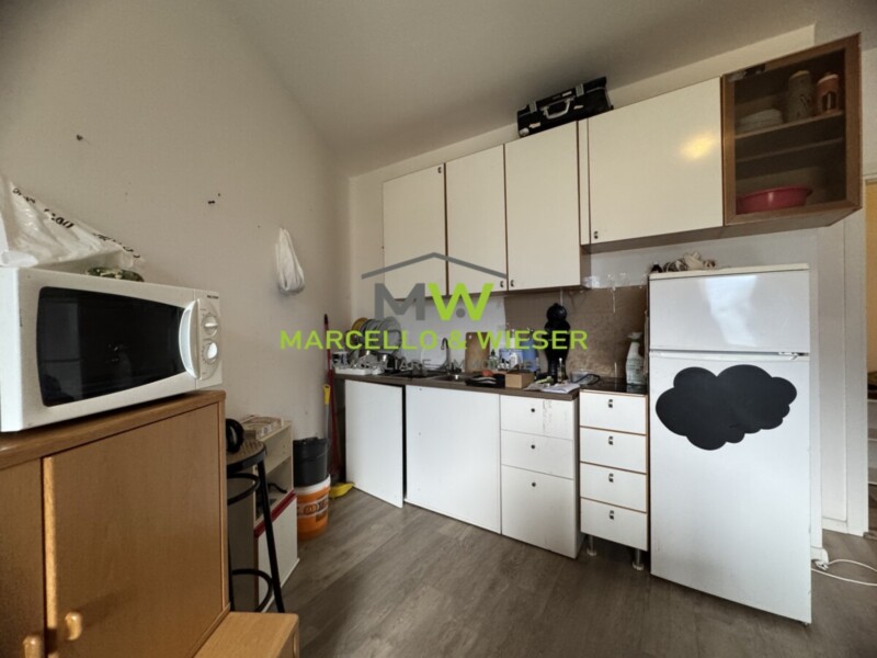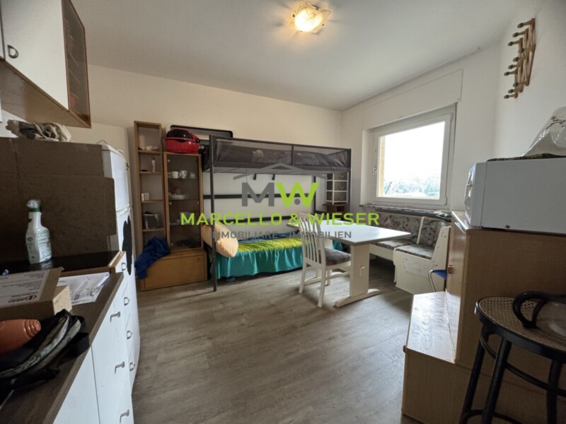 soggiorno con cucina, 1 camera, bagno-WC, disimpegno e balcone.