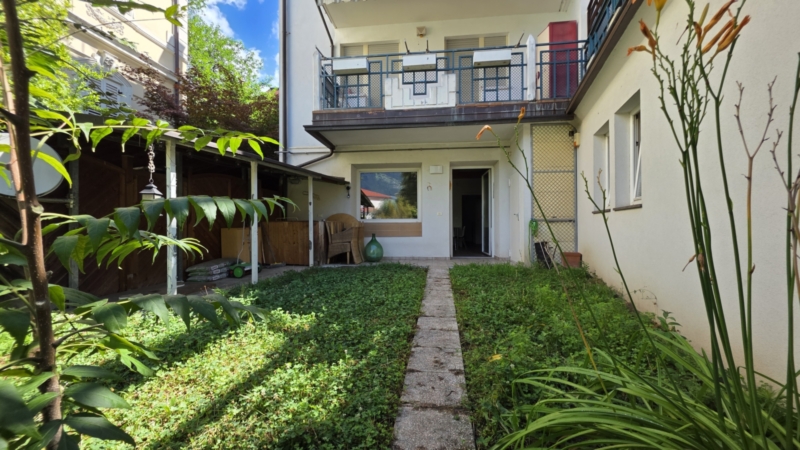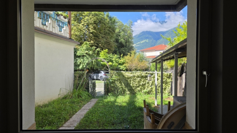 Un giardino accogliente garantisce privacy e invita a momenti di relax nel verde – quasi come vivere fuori città, ma nel cuore di Merano. Qui si respira un’atmosfera abitativa particolare: immersi nella natura, con il canto degli uccelli e una piacevole tranquillità.