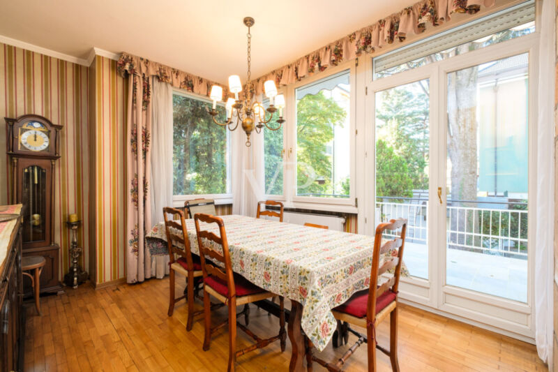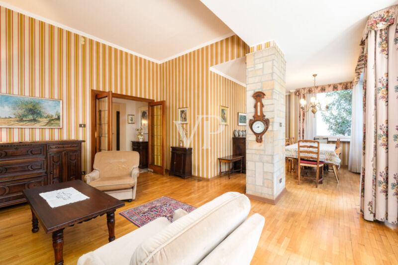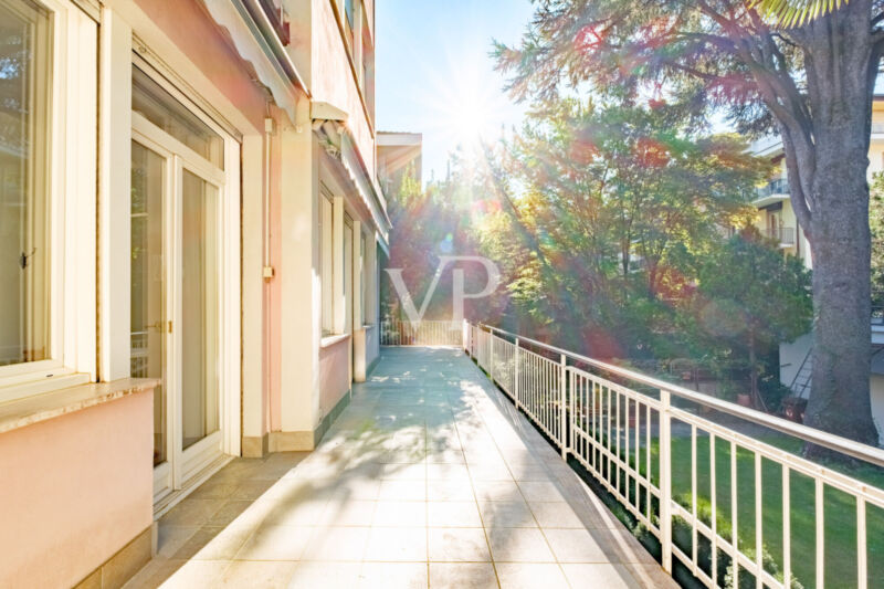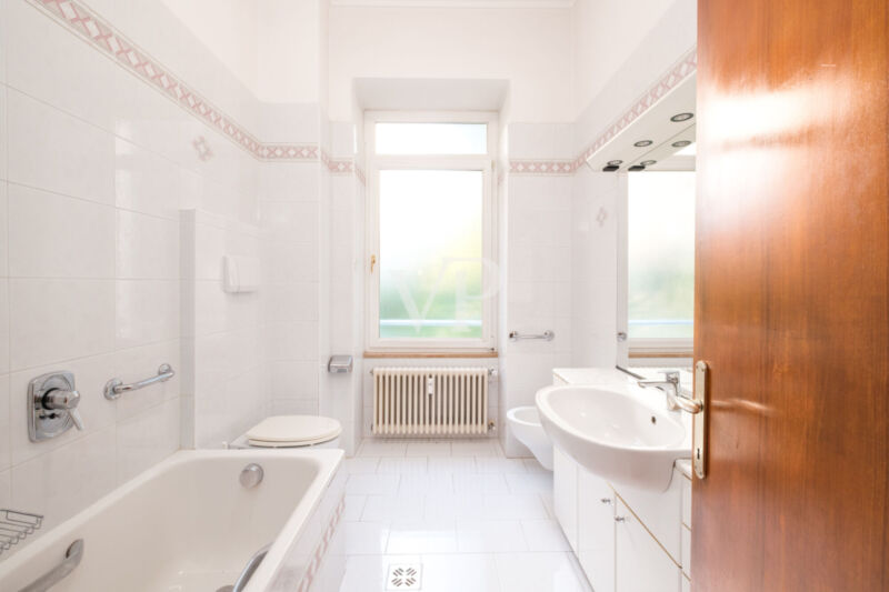Questo elegante ed ampio pentalocale si trova in un contesto residenziale molto elegante e signorile. La disposizione interna prevede un comodo ingresso, un salone doppio con zona living e pranzo con accesso alla terrazza da 30 mq. ca., una cucina abitabile, tre camere da letto matrimoniali, una camera singola, un bagno padronale finestrato, un bagno di servizio e un ripostiglio. L'unità è dotata di riscaldamento centralizzato (teleriscaldamento). L'edificio beneficia di un curato giardino condominiale. Soluzione ideale per chi cerca spazi ampi, comfort e riservatezza, in un ambiente elegante e tranquillo. Questa proprietà esclusiva è completata da un posto auto scoperto EXTRA (20.000 Euro) e due cantine.