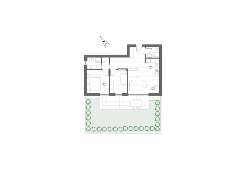 Questo accogliente appartamento si trova al piano terra di un moderno edificio di nuova costruzione a Merano. Colpisce per la sua struttura ben organizzata, con un passaggio fluido tra la zona giorno e la zona notte. Il luminoso soggiorno con cucina integrata si apre direttamente sulla spaziosa terrazza con giardino privato, creando una piacevole atmosfera immersa nel verde. L'appartamento è inoltre composto da due camere da letto, completate da due bagni: uno con finestra e doccia, l'altro come bagno per gli ospiti. Le ampie vetrate garantiscono molta luce naturale, mentre la posizione al piano terra con accesso diretto all'area esterna offre un comfort speciale. L'appartamento si trova in una posizione centrale, vicino all'ospedale, con buoni collegamenti ai mezzi pubblici e ai negozi. Il nuovo edificio è stato costruito secondo lo standard di una casa climatica A Nature. I garage sono disponibili a un costo aggiuntivo e, trattandosi di una nuova costruzione, è possibile tenere conto delle esigenze personali nell'arredamento degli interni e personalizzarne il design.