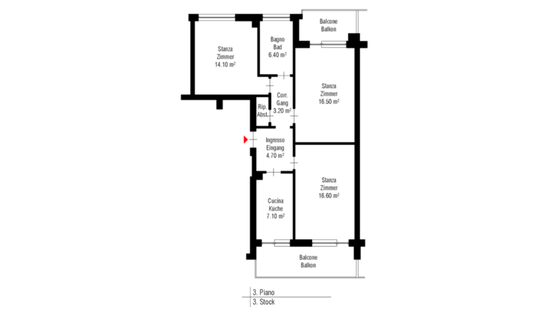 L’appartamento si trova in una zona residenziale tranquilla e ben servita di Merano, a pochi minuti a piedi dal centro e in prossimità dell’ospedale. Situato al terzo piano di un edificio dotato di ascensore, offre una piacevole luminosità grazie alla doppia esposizione est-ovest. L’immobile è da ristrutturare e rappresenta quindi un’ottima opportunità per chi desidera personalizzare gli ambienti interni e adattare la disposizione degli spazi alle proprie esigenze. La distribuzione attuale include un soggiorno accogliente, una cucina separata, due camere da letto, un bagno finestrato, un ripostiglio e un corridoio. Sono presenti inoltre due balconi che garantiscono sfoghi esterni pratici e fruibili. Al piano interrato è compresa una cantina di pertinenza. È una soluzione ideale per chi cerca una proprietà luminosa, ben collegata e vicina ai principali servizi, con la possibilità di valorizzarla attraverso una ristrutturazione personalizzata.