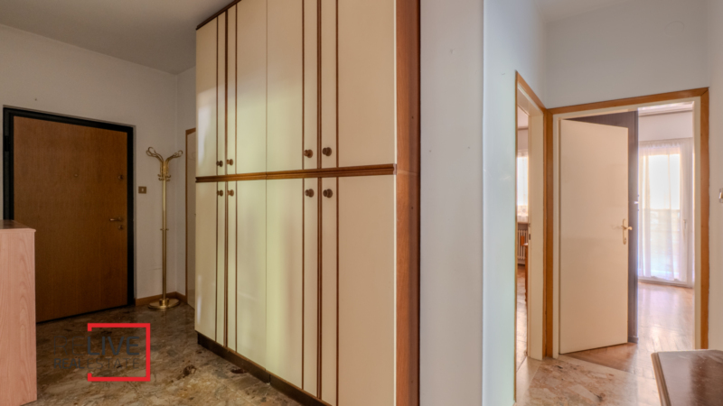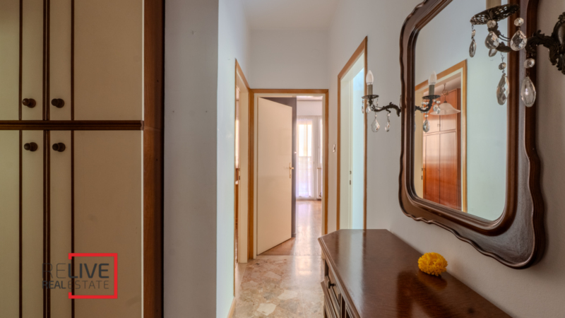 L’immobile si trova al piano rialzato di un condominio curato e servito da ascensore, con esposizione est-ovest che garantisce luminosità durante tutto l’arco della giornata e una gradevole vista aperta. Gli ambienti interni sono distribuiti in maniera funzionale e comprendono un ampio soggiorno, cucinotto separato, due camere da letto, un bagno finestrato e due balconi vivibili, sui quali sono installate anche telecamere di videosorveglianza. Le dotazioni includono infissi in PVC con doppio vetro, riscaldamento centralizzato a radiatori, aria condizionata e porta blindata. L’appartamento si presenta abitabile da subito e rappresenta una soluzione ideale sia per famiglie, grazie alla vicinanza a scuole e servizi, sia per chi desidera vivere in un contesto residenziale ben servito.