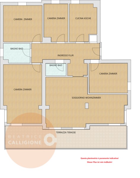 Completano la proprietà una cucina abitabile, quattro camere matrimoniali, di cui tre molto ampie, un bagno padronale finestrato, un bagno di servizio e un ripostiglio. Il riscaldamento è centralizzato e alimentato mediante teleriscaldamento.