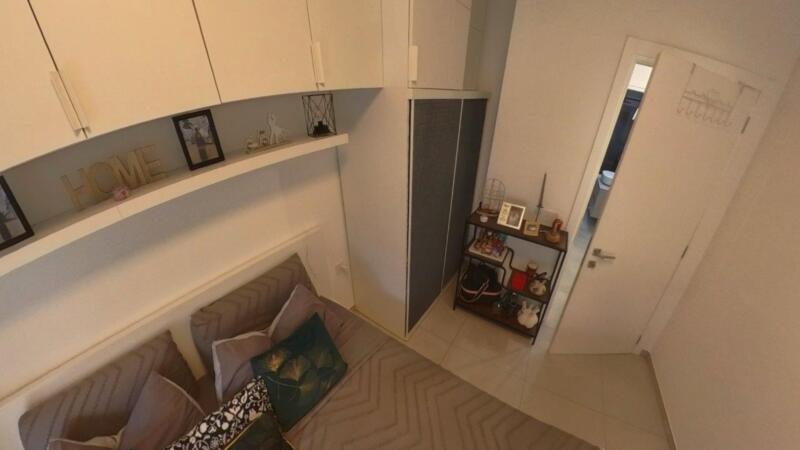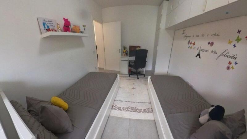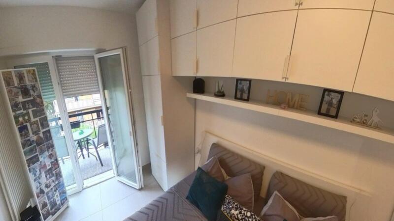 Distribuzione degli spazi: soggiorno soleggiato con cucina arredata, due camere da letto, bagno moderno con finestra