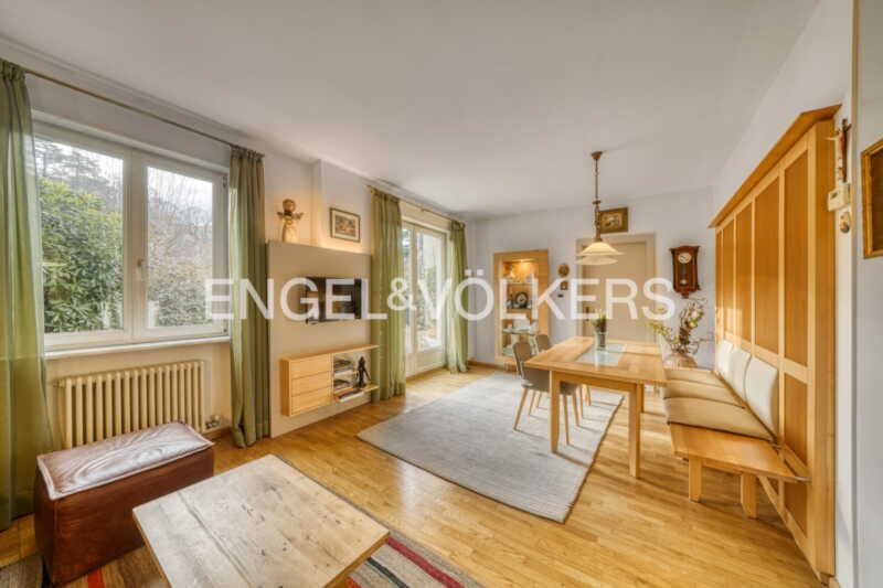 Entrando nell'appartamento, sarete accolti da un ingresso invitante che collega abilmente il guardaroba e l'area cucina. Il soggiorno spazioso si apre sulla terrazza a sud e offre un accesso al grazioso giardino privato, un rifugio pieno di luce, sole e atmosfera mediterranea. Da qui potrete ammirare il panorama montano circostante, mentre la luce naturale inonda le stanze di una calda e accogliente luminosità.