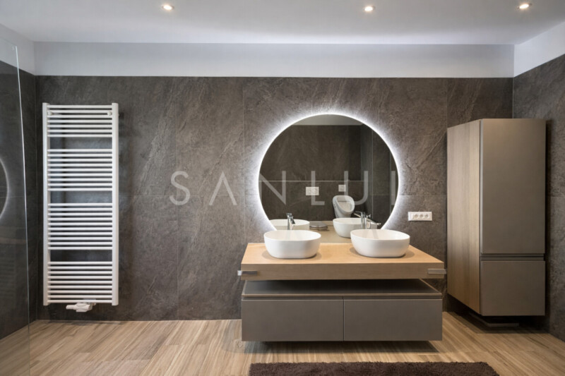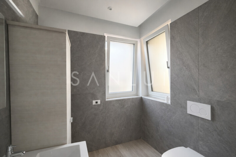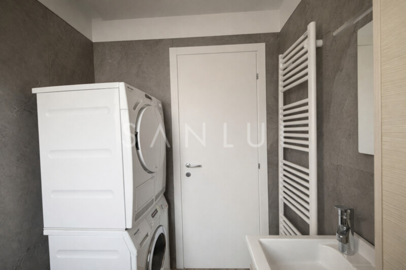 L’appartamento dispone di tre stanze versatili, utilizzabili come camera matrimoniale, camere per bambini o studio. Due bagni assicurano un’elevata funzionalità quotidiana; il bagno principale è dotato di doppio lavabo e orinatoio, offrendo un ulteriore livello di comfort. Completa la proprietà un pratico ripostiglio.