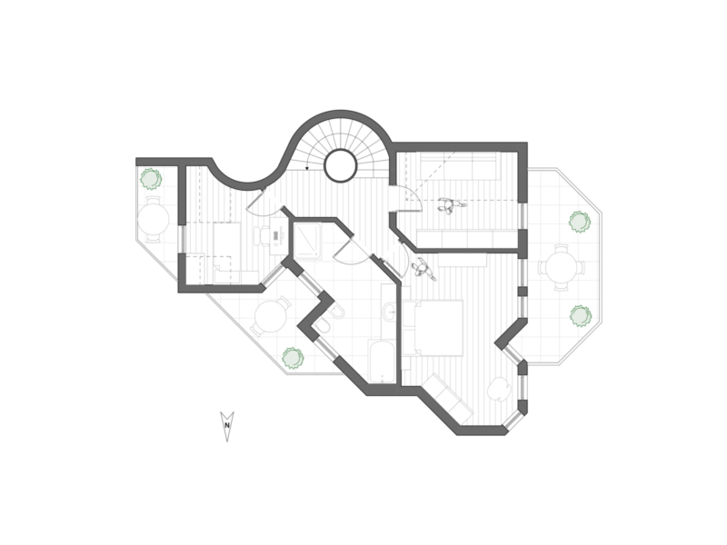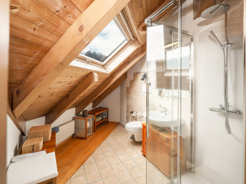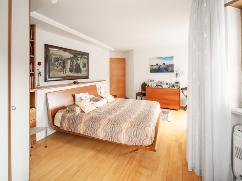Al piano superiore si trovano tre camere da letto generose, ciascuna con accesso a un’area esterna: una grande terrazza e due balconi garantiscono spazi all’aperto privati e confortevoli. Il sottotetto offre ulteriori possibilità di utilizzo, ideale come studio, area hobby o stanza aggiuntiva.