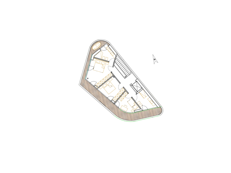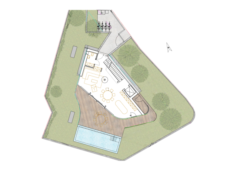 La villa si sviluppa su due livelli: al piano terra si trova l’ampia zona giorno con soggiorno, sala da pranzo e cucina open space. Una spaziosa terrazza prolunga armoniosamente lo spazio abitativo verso l’esterno, creando insieme al giardino e alla piscina un insieme perfettamente equilibrato.