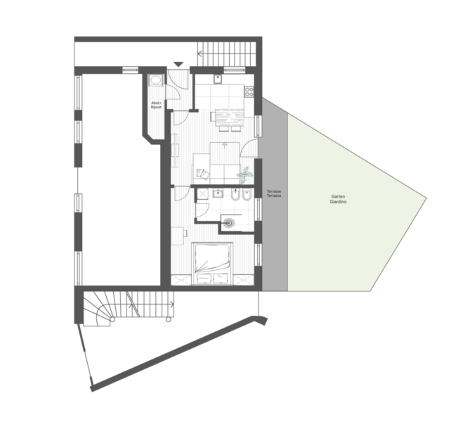 AFFITTO PER SCOPO TURISTICO - Questo bilocale con giardino, arredato con stile e di recente, al piano terra di un condominio, offre spazio per un massimo di 2 persone (a scelta 4, con divano letto) e colpisce per l'arredamento completo e nuovo e per l'ambiente accogliente e invitante. La moderna cucina a pianta aperta è ideale per cucinare e socializzare. Il giardino privato esposto a sud-ovest invita a rilassarsi e a godersi le molte ore di sole.