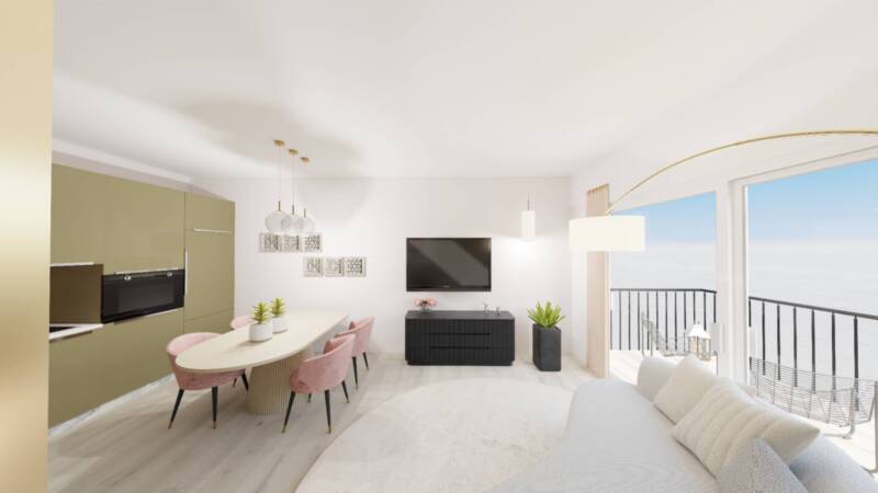 Lingresso si apre sulla luminosa zona living con cucina abitabile, da cui si accede direttamente a una spaziosa terrazza, ideale per momenti di relax allaperto. Lappartamento dispone di una stanza singola e di una camera matrimoniale con accesso diretto a una seconda terrazza privata. Completano la proprietà due moderni bagni con doccia, garantendo il massimo comfort e funzionalità. Inoltre, lappartamento offre una soffitta, ideale come spazio aggiuntivo per riporre oggetti o per altre esigenze.