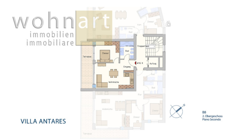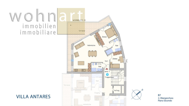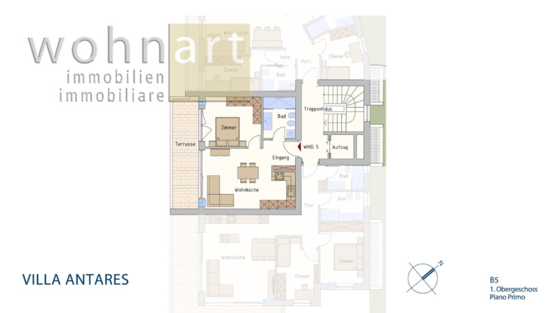 In posizione soleggiata a Montagna si trova la "Villa Antares". Il complesso residenziale è suddiviso in due edifici ed è stato realizzato secondo lo standard Klimahaus A Nature. Comprende 16 moderni appartamenti bilocali, trilocali e quadrilocali, ciascuno con ampia terrazza o giardino privato e vista panoramica sulla Valle dell’Adige. Numerosi sentieri escursionistici e piste ciclabili nei dintorni offrono eccellenti opportunità per attività sportive e tempo libero all’aria aperta. Durante la costruzione è stata posta particolare attenzione all’illuminazione naturale, alla qualità dell’aria interna e alla gestione sostenibile delle risorse idriche. I pannelli fotovoltaici forniscono energia per le aree comuni, come ascensore, garage e scale comuni, nonché per la produzione di acqua calda, mentre il riscaldamento a pavimento garantisce un comfort abitativo ottimale. Villa Antares unisce sostenibilità e qualità della vita in una posizione unica, una casa che non lascia nulla a desiderare.