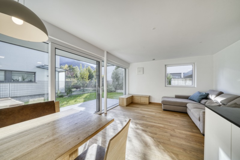 Già entrando nell'appartamento si percepisce l'atmosfera armoniosa e la scelta accurata di materiali di alta qualità. L'arredamento di buon gusto, la raffinata combinazione di colori e la qualità costruttiva di prim'ordine creano un ambiente che unisce eleganza senza tempo a un'accogliente sensazione di abitabilità. Particolarmente degna di nota è la cucina abitabile aperta e luminosa, dotata di moderni elettrodomestici di qualità e che si collega senza soluzione di continuità all'ampia zona giorno e pranzo. Grandi vetrate si aprono sul giardino privato, che si distingue per il suo orientamento a sud-ovest soleggiato, un impianto di irrigazione automatico e un alto grado di privacy – un luogo meraviglioso per godersi il sole pomeridiano e serale. L'appartamento offre due accoglienti camere da letto, un elegante bagno e un WC per gli ospiti separato. Uno spazio di deposito aggiuntivo offre un pratico spazio di archiviazione e può essere utilizzato idealmente come piccolo ufficio domestico, se necessario. L'offerta è completata da un ampio scantinato, comodamente raggiungibile con l'ascensore. Un garage spazioso può essere acquistato separatamente, se necessario. Grazie al riscaldamento autonomo a gas e alla moderna tecnologia edilizia, la proprietà si distingue per l'elevata efficienza energetica. Un impianto di ventilazione integrato garantisce un clima interno piacevole durante tutto l'anno, mentre un sistema di allarme offre ulteriore sicurezza. Questo appartamento con giardino combina perfettamente l'abitare urbano con un senso di vita vicino alla natura. È ideale per coppie o piccole famiglie che cercano una casa elegante in una posizione tranquilla ma centrale di Naturno. L'appartamento è soggetto alla convenzione secondo l'articolo 39 e può essere acquistato esclusivamente da residenti.