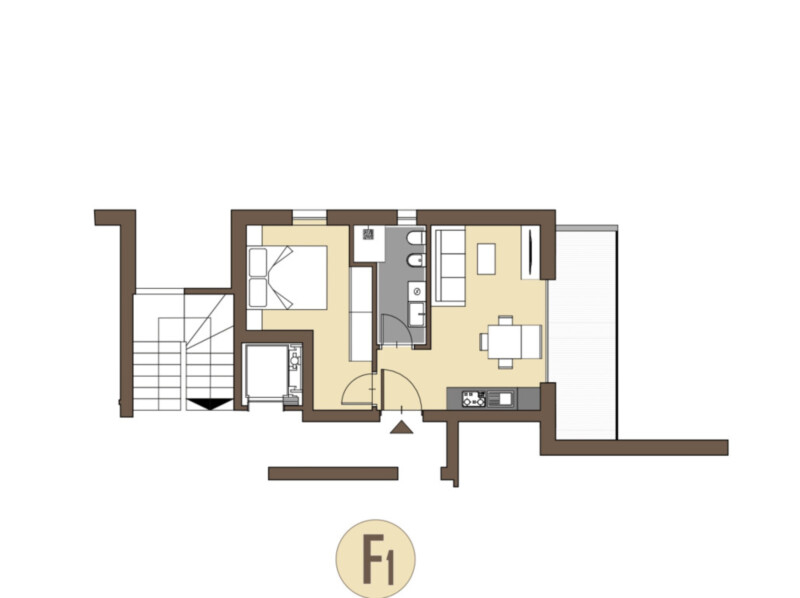 Appartamento F1: Proponiamo in vendita bilocale composto da una stanza da letto, soggiorno con cucina, bagno finestrato e terrazza.