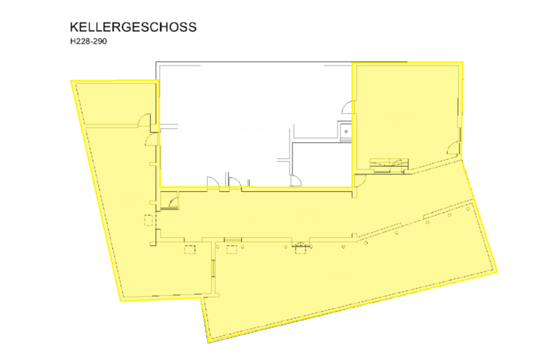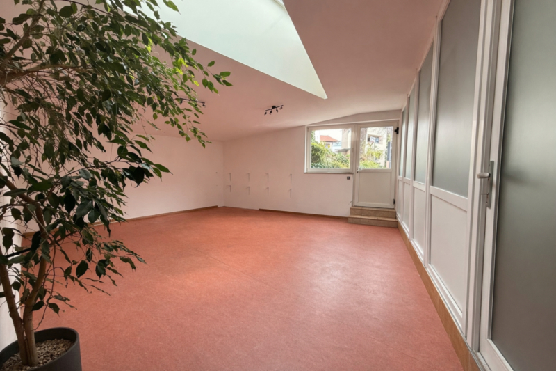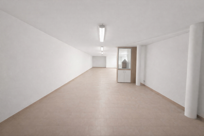 L'ufficio si trova al piano terra e ha una superficie di circa 100 m², ideale come ufficio o per la vendita al dettaglio. Inoltre nella zona posteriore dell'immobile è disponibile un magazzino con una superficie di circa 400 m².