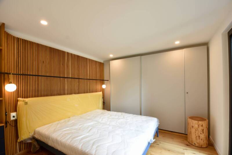 Questo appartamento sarà consegnato parzialmente arredato, incluse la camera da letto, il soggiorno e la cucina. Pavimenti in legno di alta qualità in stile rustico e eleganti piastrelle in ceramica nei bagni creano un'atmosfera elegante e accogliente. Le tapparelle elettriche alle finestre offrono ulteriore comfort e sicurezza. La connessione internet in fibra ottica ad alta velocità garantisce un'eccellente connettività.