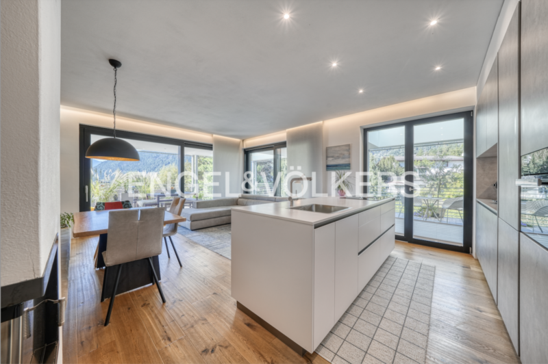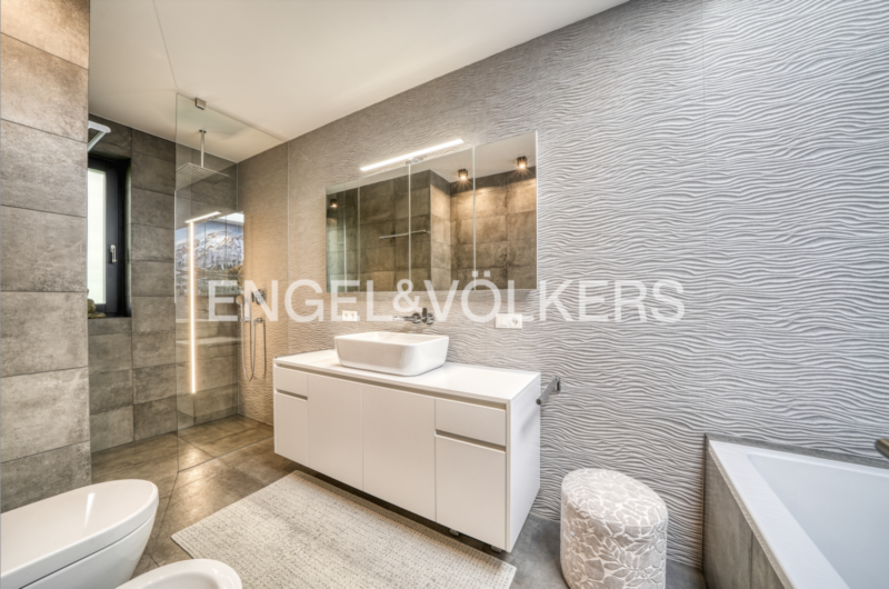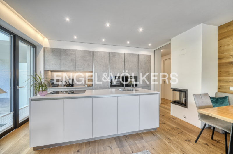 Anche all'interno la qualità elevata continua: mobili su misura del falegname, pavimenti in parquet pregiato e piastrelle speciali selezionate nel bagno caratterizzano l'ambiente elegante. Un dettaglio particolare è la finestra sul tetto sopra la vasca da bagno, che permette di ammirare le stelle la sera e conferisce all'appartamento un tocco di esclusività. Tranquillità e sicurezza si riflettono in ogni stanza, completate da elementi pratici come una cabina armadio. Un camino nella zona giorno offre ulteriore comfort e conferisce all'appartamento un'atmosfera calda e accogliente – allo stesso tempo funge da elemento decorativo suggestivo e come fonte di riscaldamento aggiuntiva nella stagione fredda.