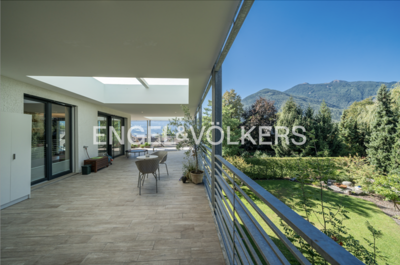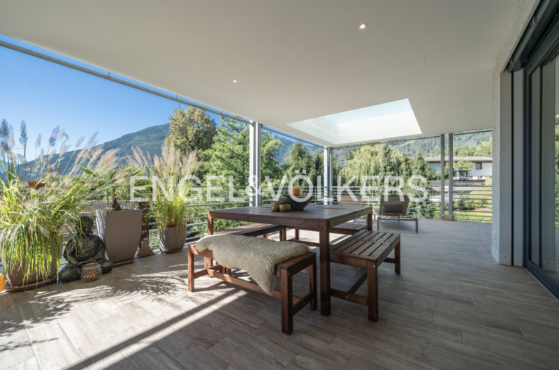Il cuore dell'appartamento è la luminosa zona giorno e pranzo, che si apre attraverso ampie finestre sulla spaziosa terrazza. Su circa 98 metri quadrati si estende quest'area esterna, che grazie alla sua esposizione a sud-ovest offre sole per tutto il giorno e rappresenta una particolarità architettonica con le sue significative finestre sul tetto. Da qui i residenti godono di una vista panoramica ininterrotta sulla città di Bressanone, mentre l'ambiente verde circostante dà la sensazione di vivere in armonia con la natura.