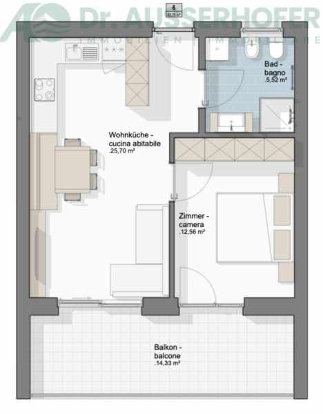 Wohnung 06: Diese perfekt eingeteilte Wohnung im ersten Stock besteht aus dem Eingangsbereich, Wohnraum mit Küche, 1 Schlafzimmer, Bad, sowie einem grosszügigen Balkon und Keller. Garagenstellplatz verfügbar.