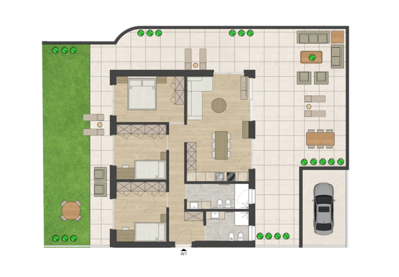 Questo quadrilocale al piano terra offre un comfort abitativo moderno e molto spazio. È composto da un'invitante zona d'ingresso, tre accoglienti camere da letto, due bagni di alta qualità e un'ampia zona giorno/pranzo. La terrazza e il giardino invitano al relax. L'appartamento dispone anche di 2 cantine al 1° piano interrato. Un posto auto all'aperto è incluso nel prezzo.