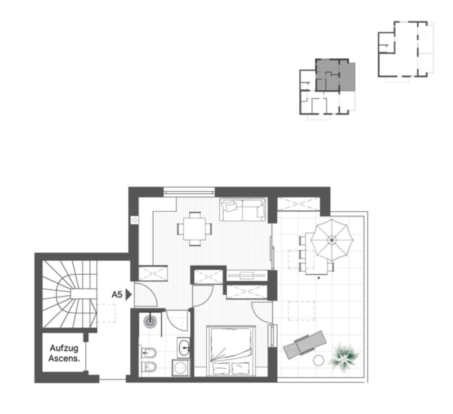 Bilocale con ampia terrazza. L'appartamento si trova al 2° piano. Gli ambienti sono stati progettati con cura; la zona giorno/pranzo a pianta aperta con accesso diretto alla terrazza di circa 25 metri quadrati offre un'esperienza di vita eccezionale. Come tutte le unità del progetto di nuova costruzione, l'appartamento è facilmente raggiungibile con l'ascensore. Un vano cantina nel seminterrato offre ulteriore spazio di archiviazione e un posto auto in garage può essere acquistato separatamente per 32.000 euro. L'appartamento è privo di convenzioni e può quindi essere utilizzato anche come casa vacanze.