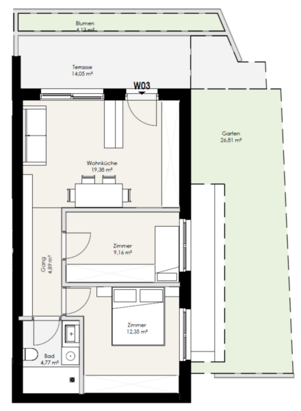 Ogni unità dispone di ampi spazi esterni, sotto forma di giardino privato o di ampie terrazze, che creano ulteriore spazio abitativo all'aperto e invitano al relax. La posizione alle porte del bosco garantisce un'atmosfera tranquilla e a contatto con la natura, sottolineando il particolare comfort abitativo di questo progetto.