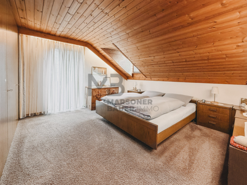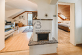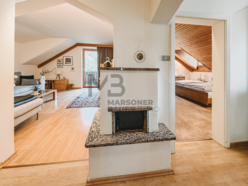 2º piano/mansarda: l'appartamento è composto da un ampio ingresso con camino e angolo ufficio, soggiorno, cucina abitabile, grande bagno, camera da letto matrimoniale e per bambini e balcone con vista panoramica sulle montagne;
