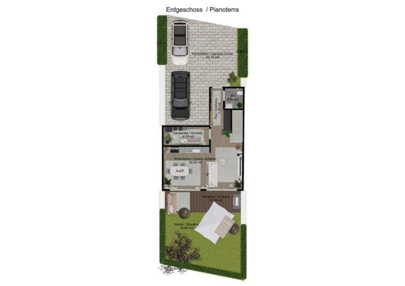 Questa elegante villetta a schiera di 197 mq.a due piani, ideale per una famiglia, si distingue per le sue rifiniture di alta qualità e la certificazione CasaClima A, che garantisce efficienza energetica e un comfort abitativo ottimale. Al piano terra troviamo un ampio salone luminoso con cucina a vista, un bagno di servizio e accesso diretto a una spaziosa terrazza e un giardino privato. Il piano include anche una comoda cantina/lavanderia, offrendo spazio aggiuntivo per organizzare la casa. Al piano superiore, la zona notte comprende tre camere matrimoniali, servite da due bagni, oltre a una ampia terrazza. La proprietà è completata da posti auto esterni di esclusiva proprieta´ che garantiscono praticità e comodità per tutta la famiglia. Prezzi a partire da Euro 610.000,00