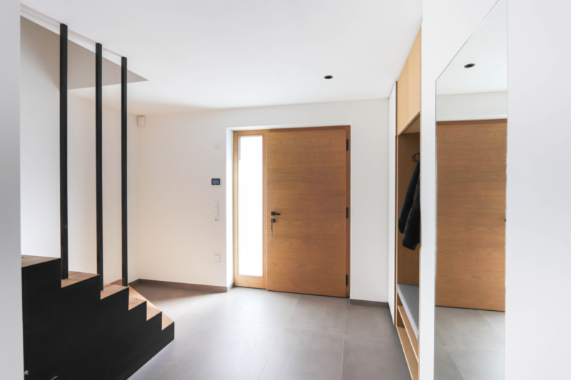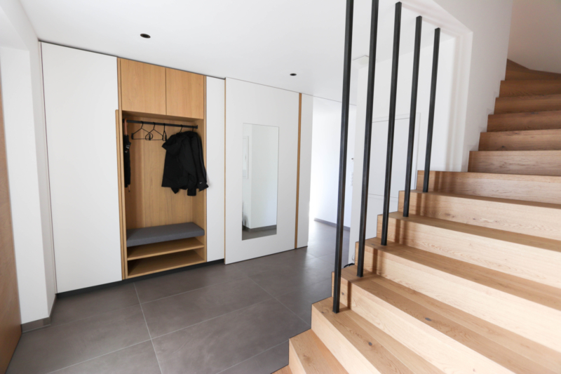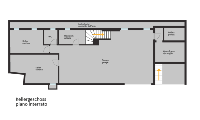 Al piano terra si trovano un accogliente ingresso e un’ampia zona giorno open space composta da soggiorno, cucina separata con accesso diretto alla terrazza, uno studio e un bagno. La terrazza accogliente e il giardino adiacente offrono spazio sufficiente per un tavolo da pranzo all’aperto e invitano a piacevoli momenti di relax.