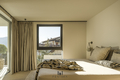 tutta altezza, prive di cornici, creano continuità tra interno ed esterno; le porte filo muro