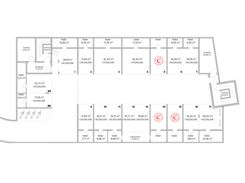 I posti auto in garage nel seminterrato possono essere acquistati separatamente come opzione.