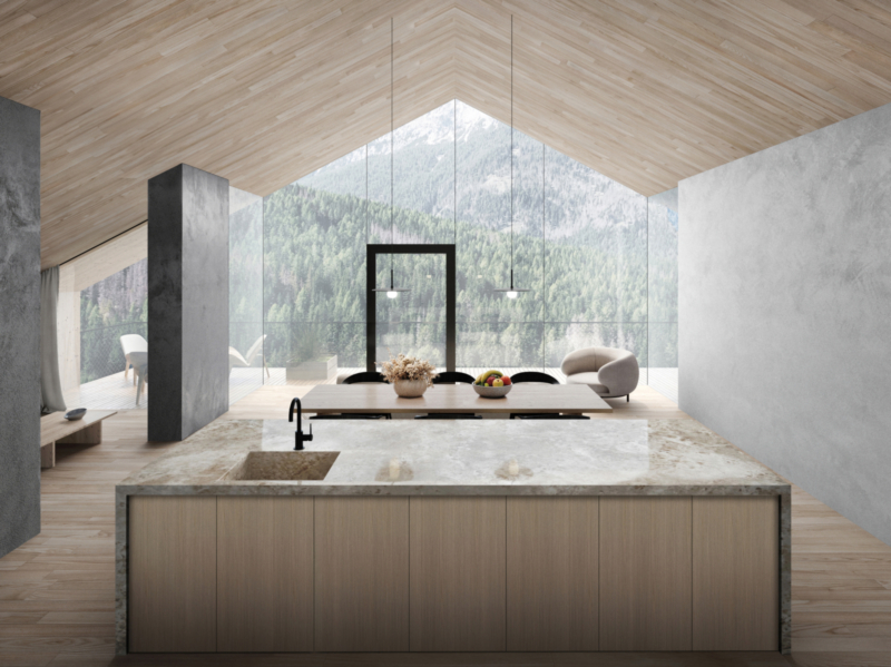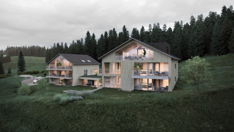 L'appartamento al secondo piano comprende una luminosa cucina abitabile, caratterizzata da una spettacolare vetrata a tutta altezza e una stufa accogliente, tre ampie camere da letto, un bagno e un WC. Una terrazza esposto a sud completa l'offerta. L'accesso diretto all'appartamento tramite ascensore conferisce all'immobile un particolare feeling loft.
