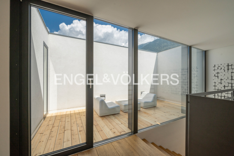 Questa moderna struttura combina un design esclusivo con un'eccezionale posizione logistica. Il collegamento strategico garantisce un rapido accesso alla proprietà e un'efficiente accessibilità alle destinazioni più importanti. Godetevi un'esperienza di vita unica ed elegante nella vostra proprietà su tre livelli. Entrando al piano terra, si viene accolti dall'ampio soggiorno. L'impressionante altezza del soffitto di circa 5,40 metri e le ampie vetrate conferiscono all'ambiente un'atmosfera ariosa e lussuosa. Il soggiorno e la sala da pranzo a pianta aperta, con la cucina di alta qualità e la dispensa adiacente, creano un ambiente perfetto per la socializzazione. Da qui si accede direttamente alla terrazza rivestita in legno e al giardino ben curato, che invita a trascorrere momenti di relax all'aperto. Al piano terra si trovano anche numerosi posti auto comuni e l'ampio cortile. All'interno si trovano anche un elegante ufficio e un guardaroba. La ringhiera di design conduce al primo piano, dove vi attende una biblioteca a pianta aperta. L'impressionante spazio d'aria e le grandi finestre permettono di godere di una vista aperta. Qui si trova anche la spaziosa camera da letto principale, dotata di una cabina armadio integrata e di un lussuoso bagno. Il secondo piano offre un'impressionante terrazza e uno spazioso balcone, che offrono ulteriori opportunità di godere del sole e della vista. Due ulteriori camere da letto e un altro bagno offrono ampio spazio e comfort per la famiglia e gli ospiti. Tutte le stanze emanano un'atmosfera lussuosa grazie all'illuminazione indiretta, ai materiali da costruzione di alta qualità e agli arredi di marca. Lo spazioso seminterrato, con le sue aree luminose e generose, completamente attrezzate con riscaldamento a pavimento, offre un'ampia gamma di possibilità di utilizzo. Che sia una sala fitness, una sala hobby o un'oasi di benessere, qui potrete realizzare i vostri sogni abitativi individuali. Scoprite di persona questo capolavoro architettonico e lasciatevi ispirare dalla sua eleganza unica e dal suo comfort abitativo. Fissate oggi stesso una visita e scoprite la vostra nuova casa o residenza per le vacanze a Silandro.