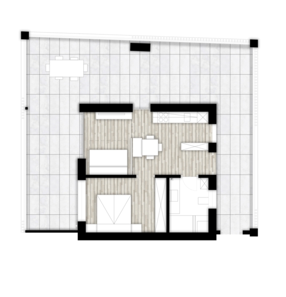 Questo meraviglioso attico si compone di una moderna zona giorno con cucina, camera da letto, bagno funzionale e un'ampia terrazza soleggiata con vista panoramica.