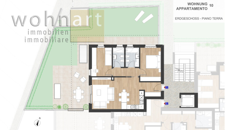 A Termeno, in una posizione centrale e soleggiata, è in costruzione un esclusivo complesso abitativo con 17 appartamenti moderni, caratterizzati da un'architettura ben studiata e un alto comfort abitativo. Sono in vendita appartamenti bilocali, trilocali e quadrilocali, dotati di giardino privato o di spaziose terrazze, oltre a due attici che costituiscono un'unità autonome. Ogni appartamento comprende una cantina, mentre garage di diverse dimensioni possono essere acquistati separatamente. Grazie alla costruzione di alta qualità secondo lo standard Klima-Haus-A-Nature, gli abitanti potranno godere di un'abitazione sostenibile in un ambiente energeticamente efficiente. La posizione centrale permette a tutti i residenti di raggiungere facilmente a piedi negozi, ristoranti e altre strutture importanti, rendendo la vita quotidiana comoda e pratica.