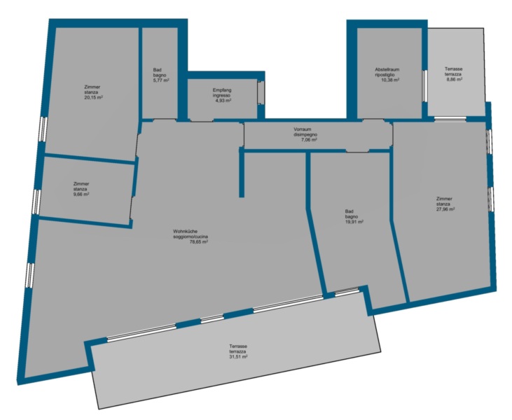 Gli appartamenti sono già completamente rifiniti e pronti per essere abitati. È possibile scegliere tra due spaziosi trilocali, quattro accoglienti bilocali e un esclusivo attico di quasi 180 m² di superficie abitabile netta, che colpisce per la sua ampiezza e luminosità. Ogni unità dispone di una propria cantina, mentre i posti auto all'aperto o in garage possono essere acquistati separatamente.