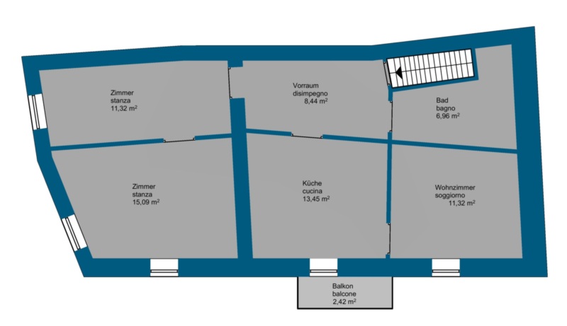 L'immobile è suddiviso in due unità abitative separate. Al piano terra si trova un accogliente bilocale, ideale per una persona singola, una coppia o anche per essere affittato. Sopra di esso si estende un altro appartamento su due piani che occupa i due piani superiori della casa. Questo offre spazi abitativi più generosi e una piacevole suddivisione, che lo rendono ideale come residenza principale per una famiglia.