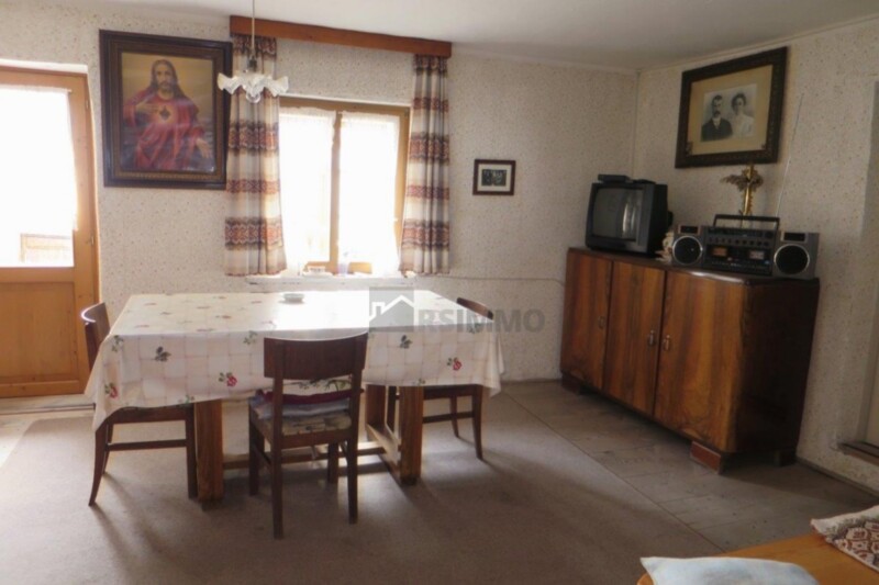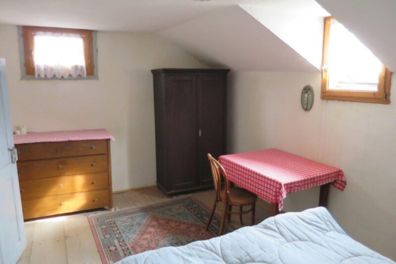 Vendesi a estimatori porzione di una casa contadina nel centro del paese. L'immobile fino ad ora è stato usato solamente per i mesi estivi e si trova al primo piano. La superficie netta è di circa 50 metri e comprende ingresso, cucina, ripostiglio, soggiorno con stufa a ole e camera da letto. A fianco si trova il fienile e al piano superiore un'ampia soffitta in cui è stata adibita una 'camera per gli ospiti'. Il riscaldamento è a legna. Al momento c'è solo un WC, mentre il bagno dovrebbe essere realizzato. Il soggiorno si affaccia su un balconcino. Una cantina completa l'immobile. Rifugio ideale per vacanze autentiche lontano dallo stress della vita quotidiana.